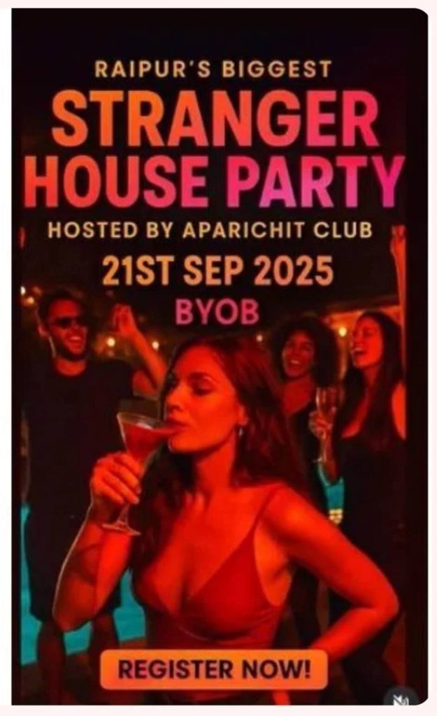 साथ ही इसमें लड़के-लड़कियों को बिना कपड़े शामिल होने को कहा गया है. न्यूड पार्टी के अलावा स्ट्रेंजर हाउस पार्टी (Stranger House Party) का भी पोस्टर वायरल हो रहा है. जिसका आयोजन 21 सितंबर को किया जाएगा. जो शाम चार बजे से रात भर चलेगा. इस पार्टी में लोगों से अपनी शराब खुद लाने को कहा गया है. पार्टी के आयोजनकर्ता कौन है अभी इसका कोई नाम पता नहीं हो.