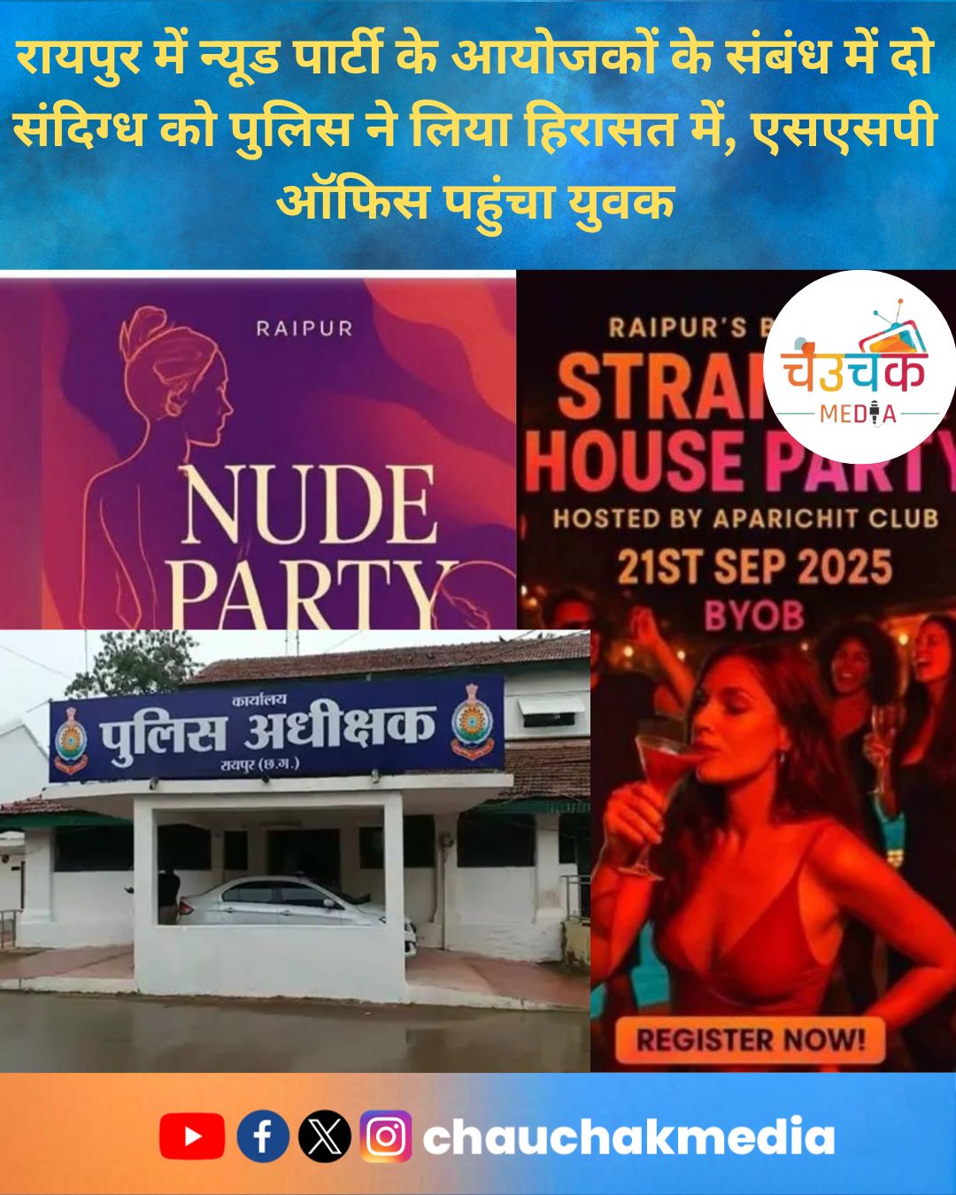 रायपुर में न्यूड पार्टी के आयोजकों के संबंध में दो संदिग्ध को पुलिस ने लिया हिरासत में, एसएसपी ऑफिस पहुंचा युवक
