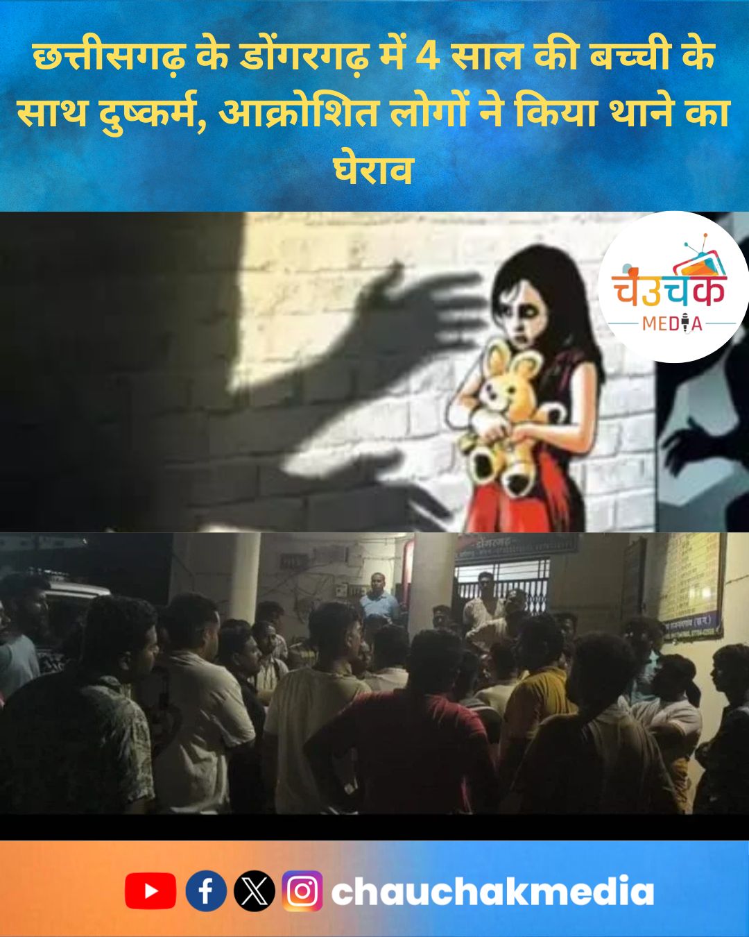 छत्तीसगढ़ के डोंगरगढ़ में 4 साल की बच्ची के साथ दुष्कर्म, आक्रोशित लोगों ने किया थाने का घेराव