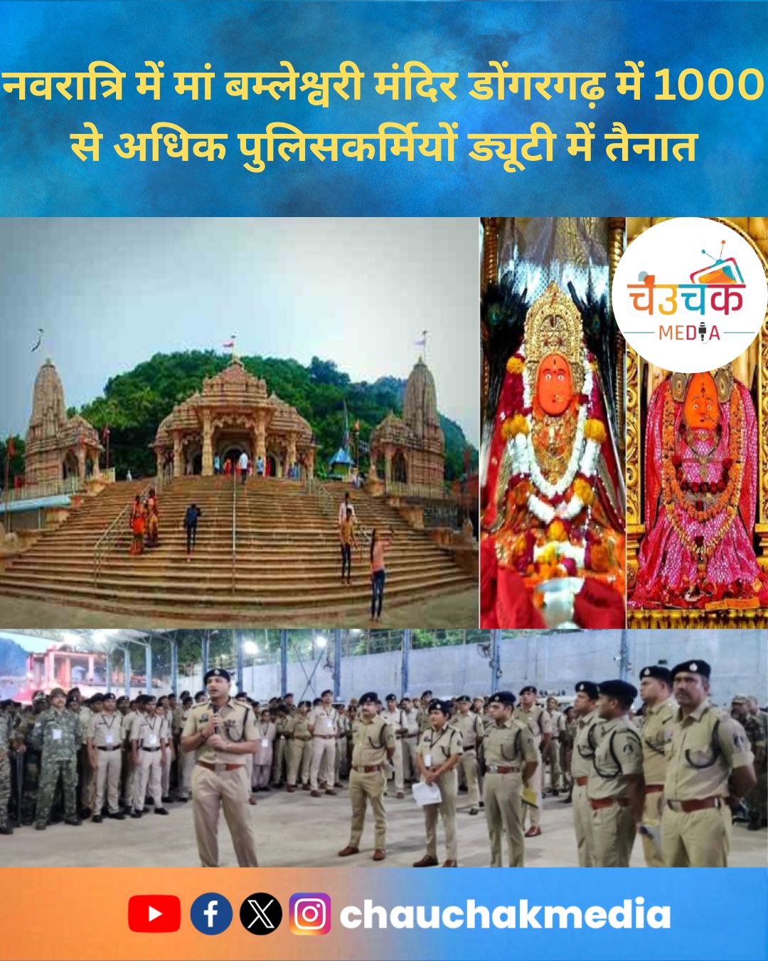 राजनांदगांव : जिले के डोंगरगढ़ स्थित मां बम्लेश्वरी मंदिर में चल रहे नवरात्रि मेले के दौरान सुरक्षा व्यवस्था को मजबूत करने के लिए 1000 से अधिक पुलिसकर्मियों की तैनाती की गई है।