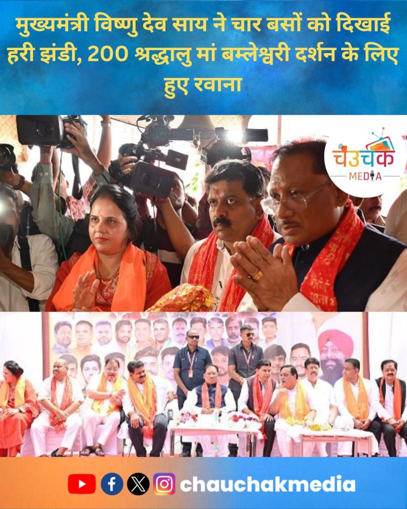 मुख्यमंत्री विष्णु देव साय ने चार बसों को दिखाई हरी झंडी, 200 श्रद्धालु मां बम्लेश्वरी दर्शन के लिए हुए रवाना