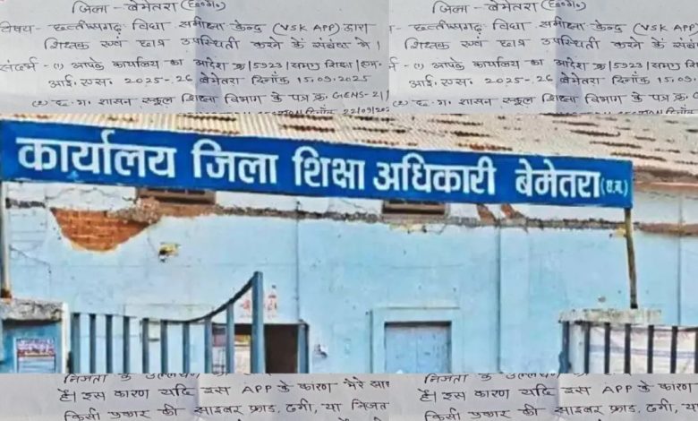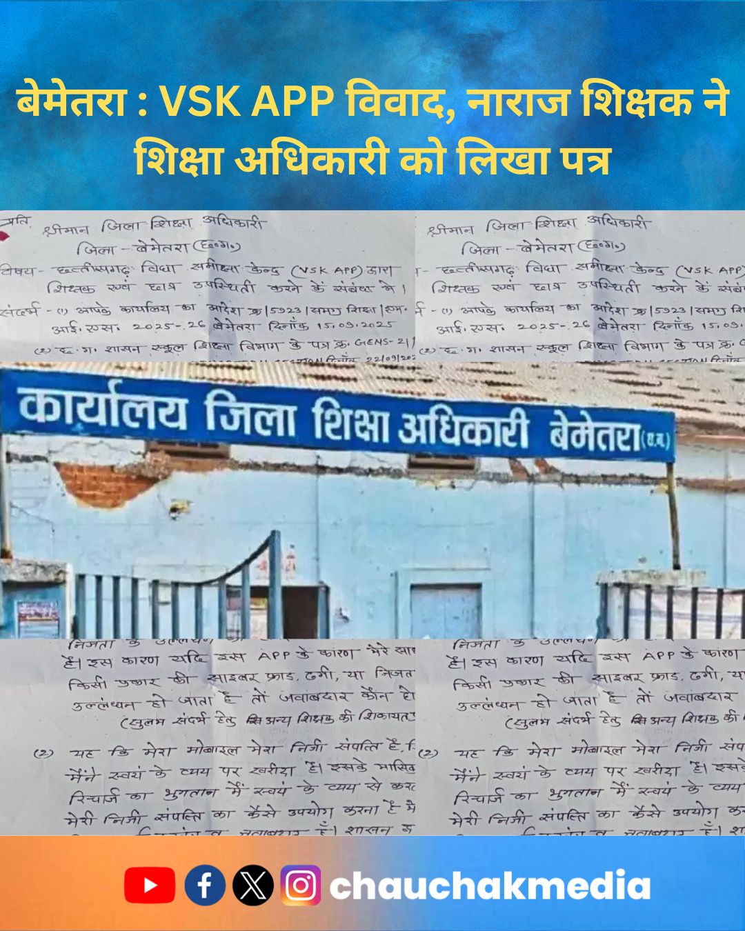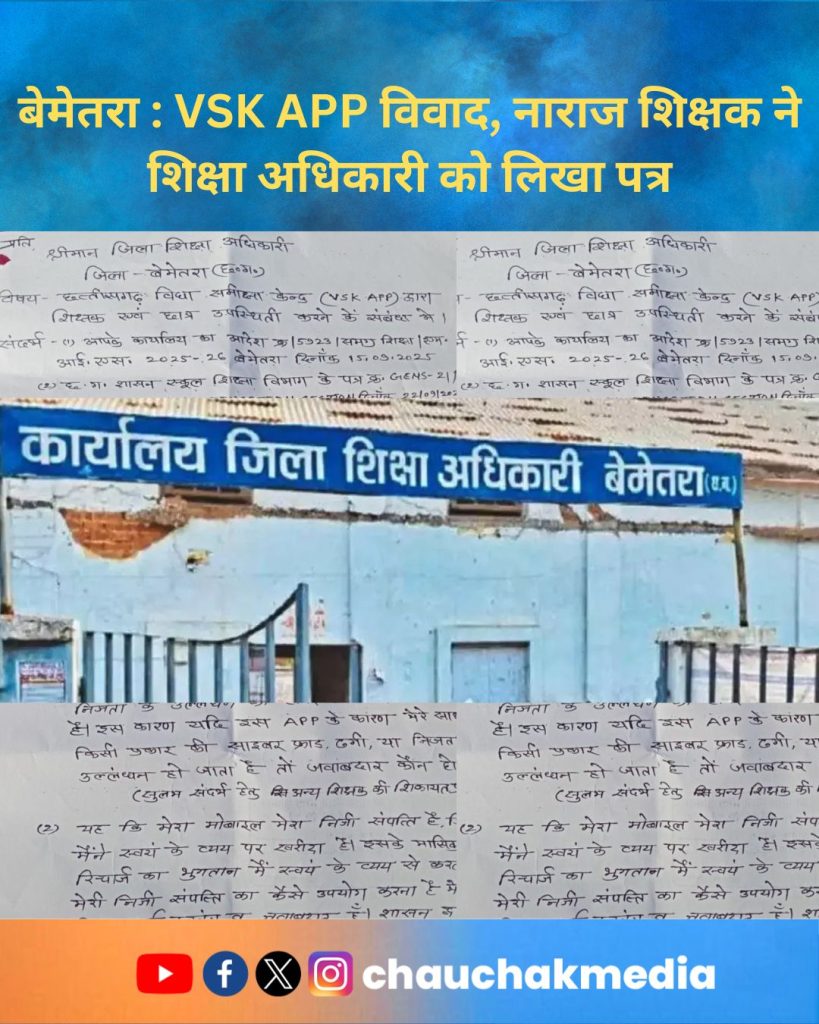 बेमेतरा : VSK APP विवाद, नाराज शिक्षक ने शिक्षा अधिकारी को लिखा पत्र