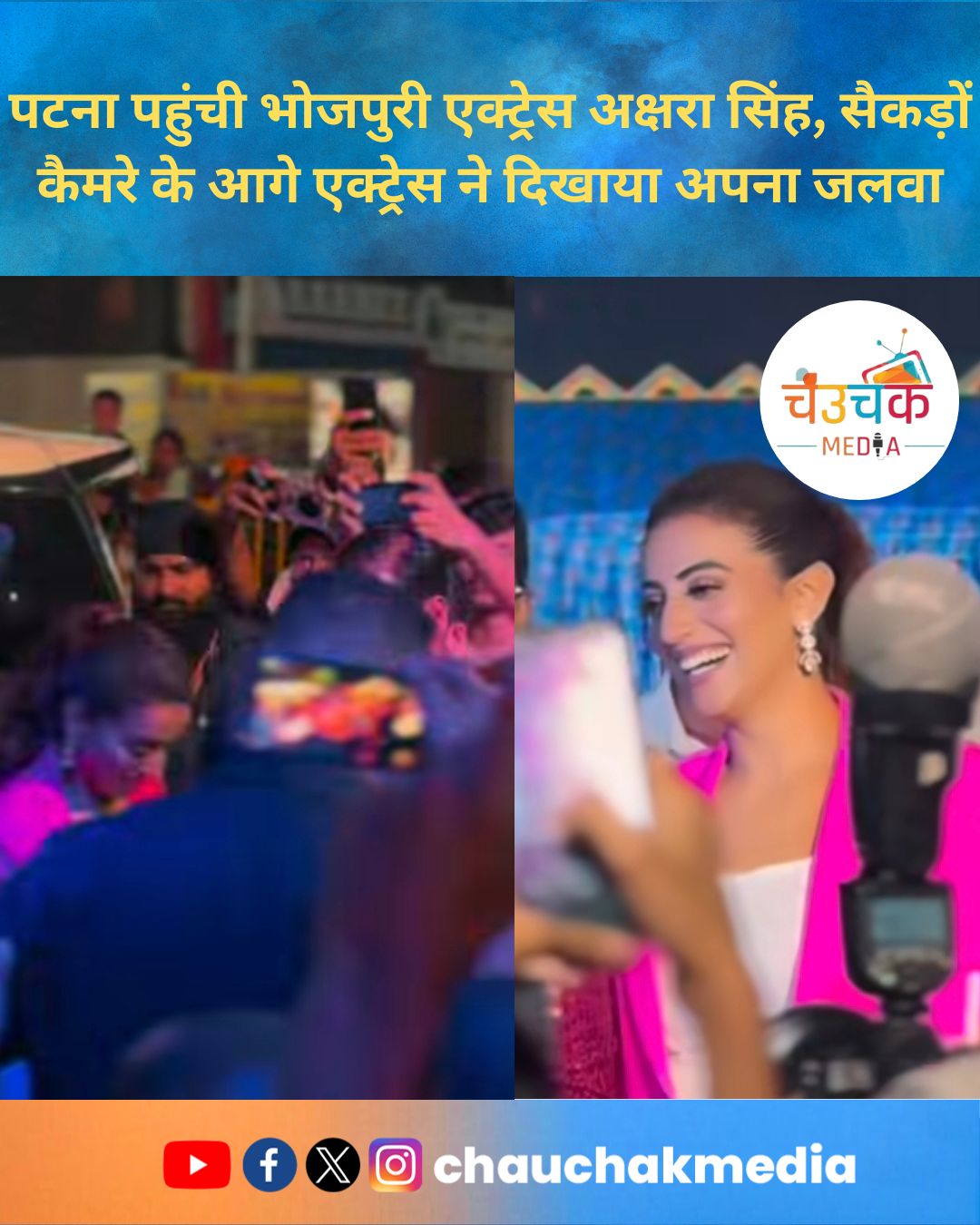 पटना पहुंची भोजपुरी एक्ट्रेस अक्षरा सिंह, सैकड़ों कैमरे के आगे एक्ट्रेस ने दिखाया अपना जलवा