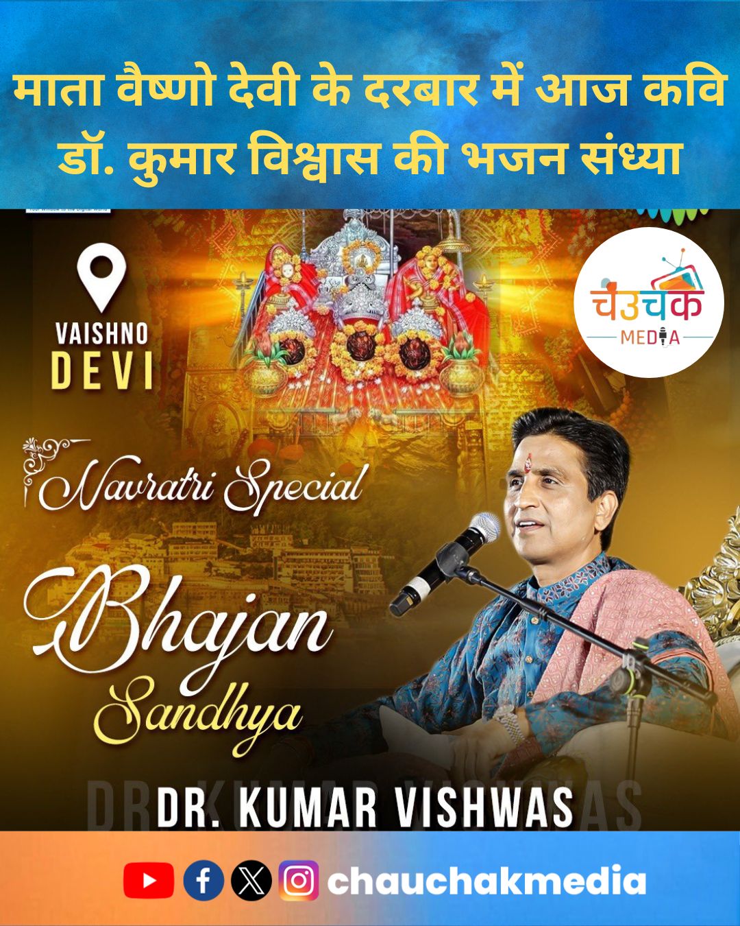 कटरा, जम्मू-कश्मीर: आज नवरात्रि के पावन अवसर पर माता वैष्णो देवी के दरबार में एक विशेष भजन संध्या का आयोजन किया जा रहा है, जिसमें जाने-माने कवि और शायर डॉ. कुमार विश्वास अपनी मधुर वाणी से भक्तों को मंत्रमुग्ध करेंगे। यह भजन संध्या माता वैष्णो देवी के प्रति भक्ति भाव से ओत-प्रोत होगी, और इसे लाइव प्रसारण के माध्यम से भी देखा जा सकेगा।