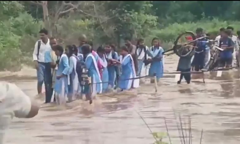गरियाबंद की घटना, क्षतिग्रस्त पुलिया से जान जोखिम में डालकर स्कूल जा रहे बच्चे