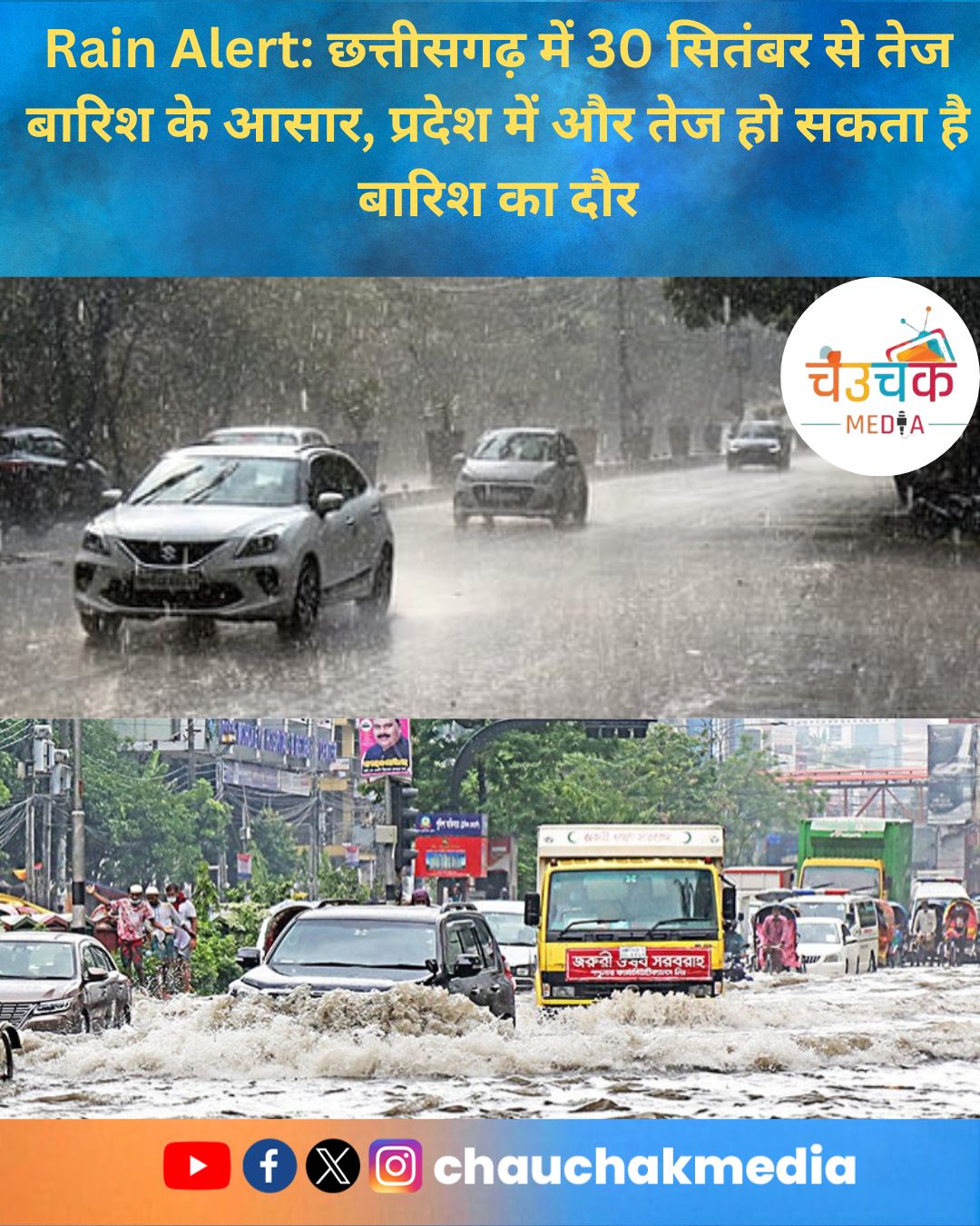 Rain Alert: छत्तीसगढ़ में 30 सितंबर से तेज बारिश के आसार, प्रदेश में और तेज हो सकता है बारिश का दौर