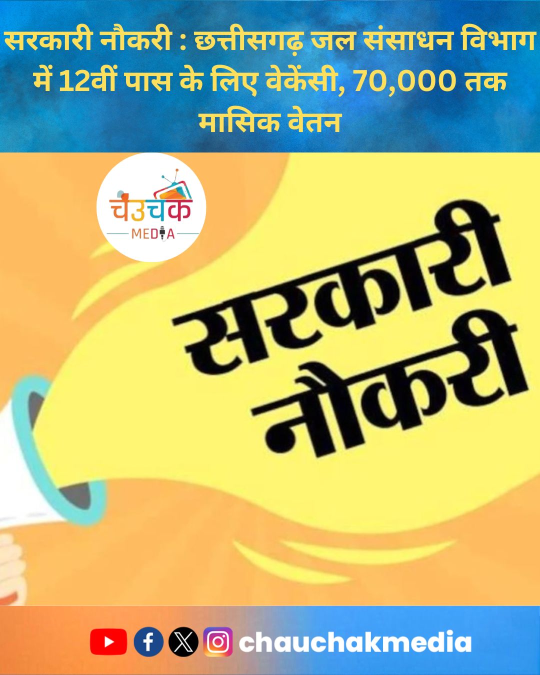सरकारी नौकरी : छत्तीसगढ़ जल संसाधन विभाग में 12वीं पास के लिए वेकेंसी, 70,000 तक मासिक वेतन
