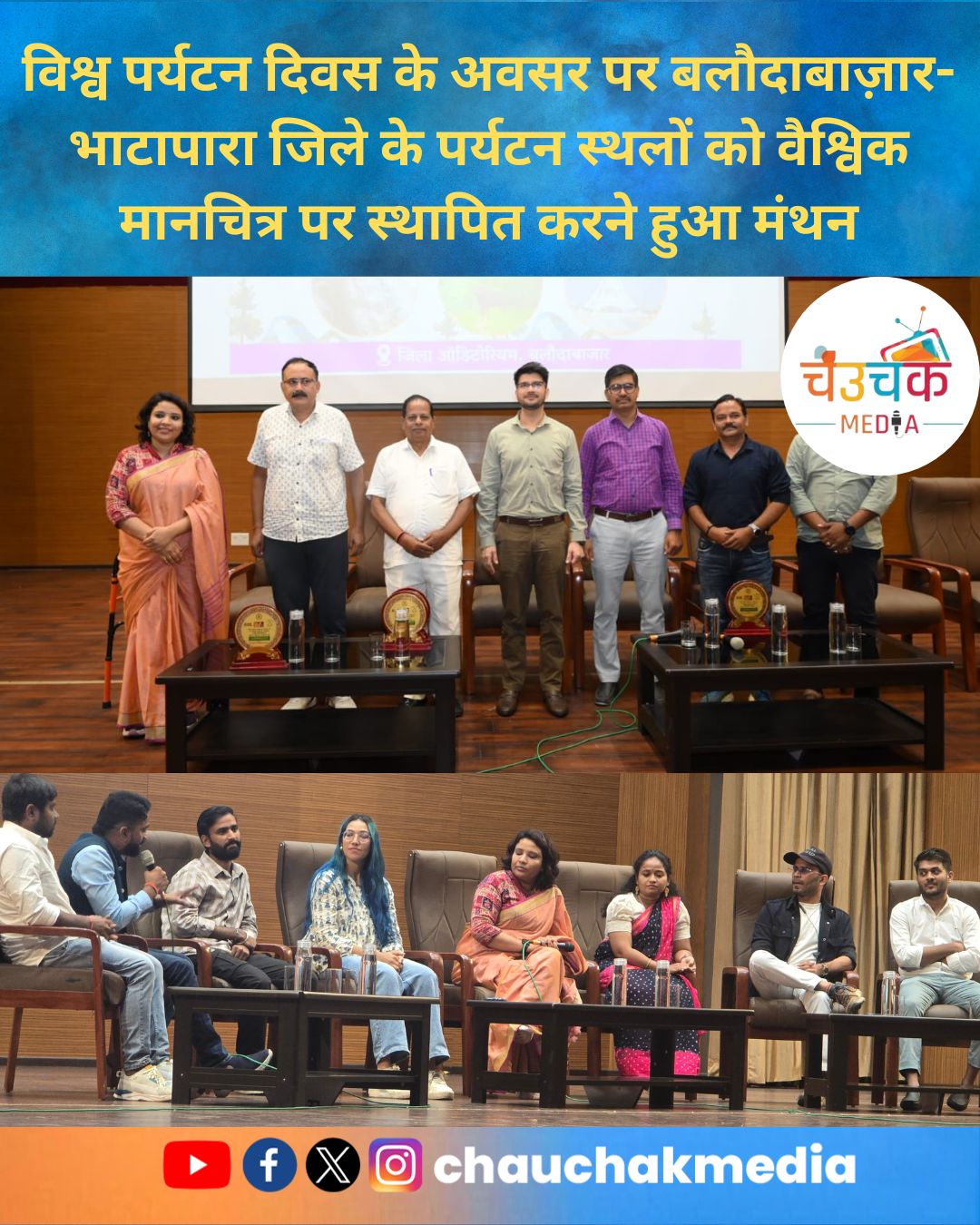बलौदाबाज़ार-भाटापारा: 30 सितंबर विश्व पर्यटन दिवस के अवसर पर बलौदाबाज़ार-भाटापारा ज़िले में पर्यटन की संभावनाओं और विकास पर सार्थक परिचर्चा हुई। जिसमें वरिष्ठ पत्रकारों,विषय विशेषज्ञों और सोशल मीडिया इन्फ़्लुएंसरों ने ज़िले के पर्यटन स्थलों को वैश्विक मानचित्र पर स्थापित करने मंथन किया गया।