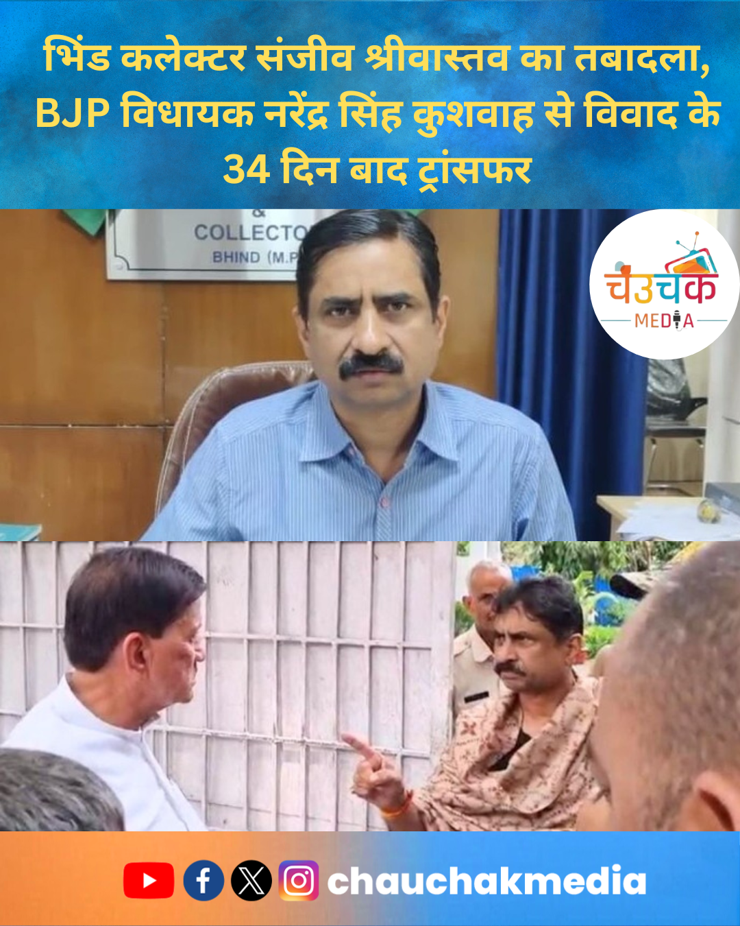भिंड कलेक्टर संजीव श्रीवास्तव का तबादला, BJP विधायक नरेंद्र सिंह कुशवाह से विवाद के 34 दिन बाद ट्रांसफर