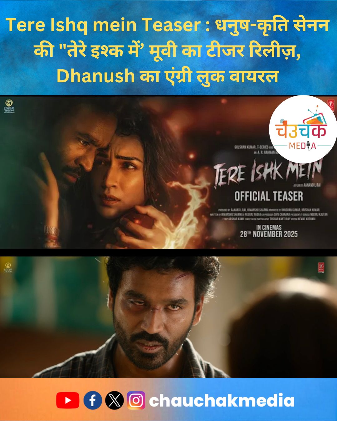 Tere Ishq mein Teaser : धनुष-कृति सेनन की “तेरे इश्क में’ मूवी का टीजर रिलीज़, Dhanush का एंग्री लुक वायरल