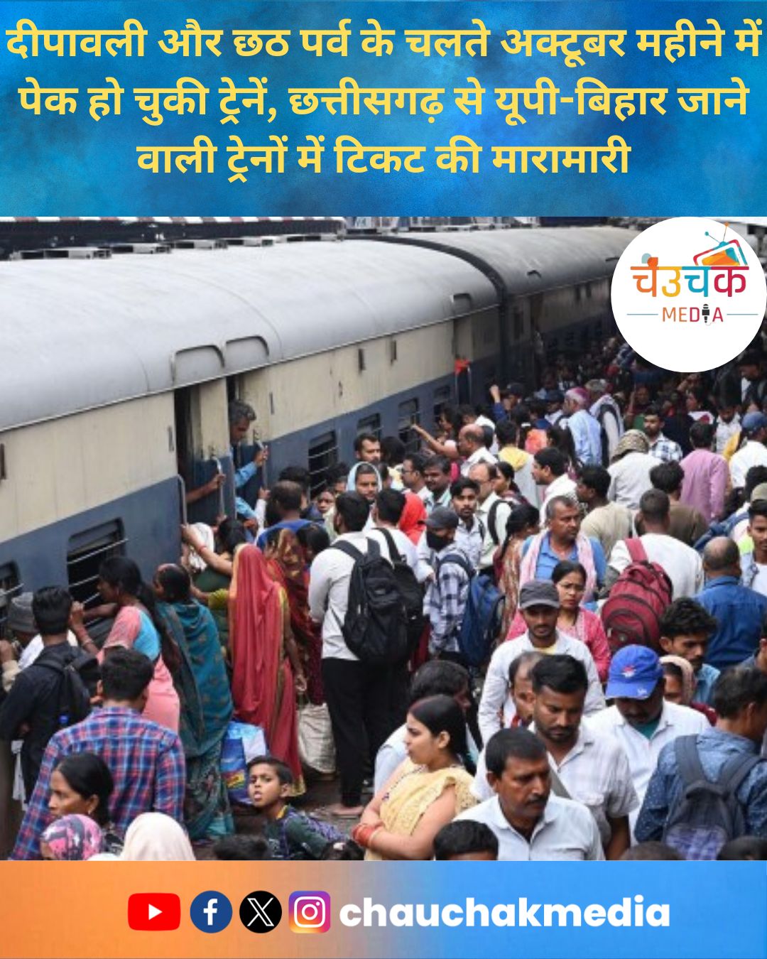 दीपावली और छठ पर्व के चलते अक्टूबर महीने में पेक हो चुकी ट्रेनें, छत्तीसगढ़ से यूपी-बिहार जाने वाली ट्रेनों में टिकट की मारामारी