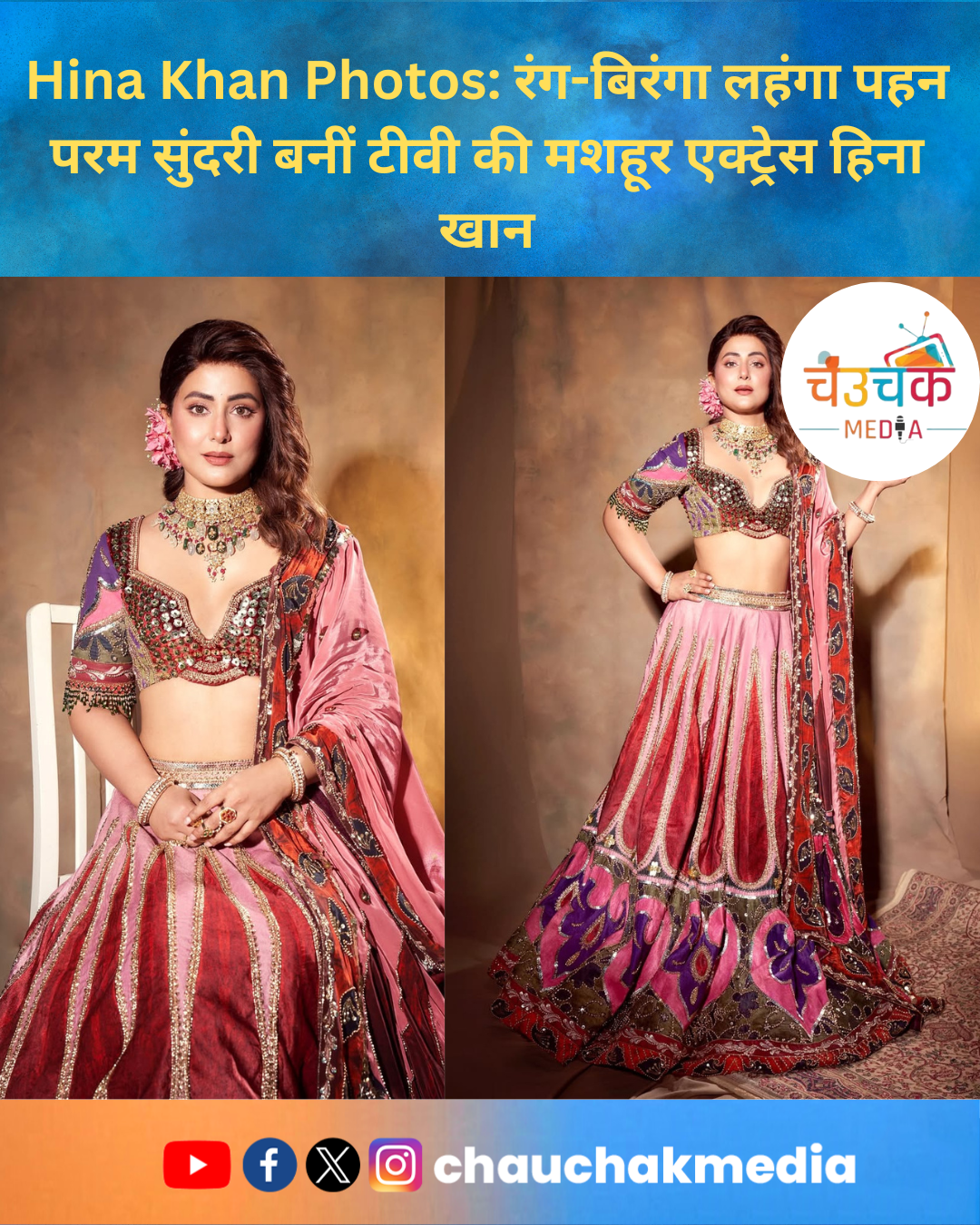 Hina Khan Photos: रंग-बिरंगा लहंगा पहन परम सुंदरी बनीं टीवी की मशहूर एक्ट्रेस हिना खान
