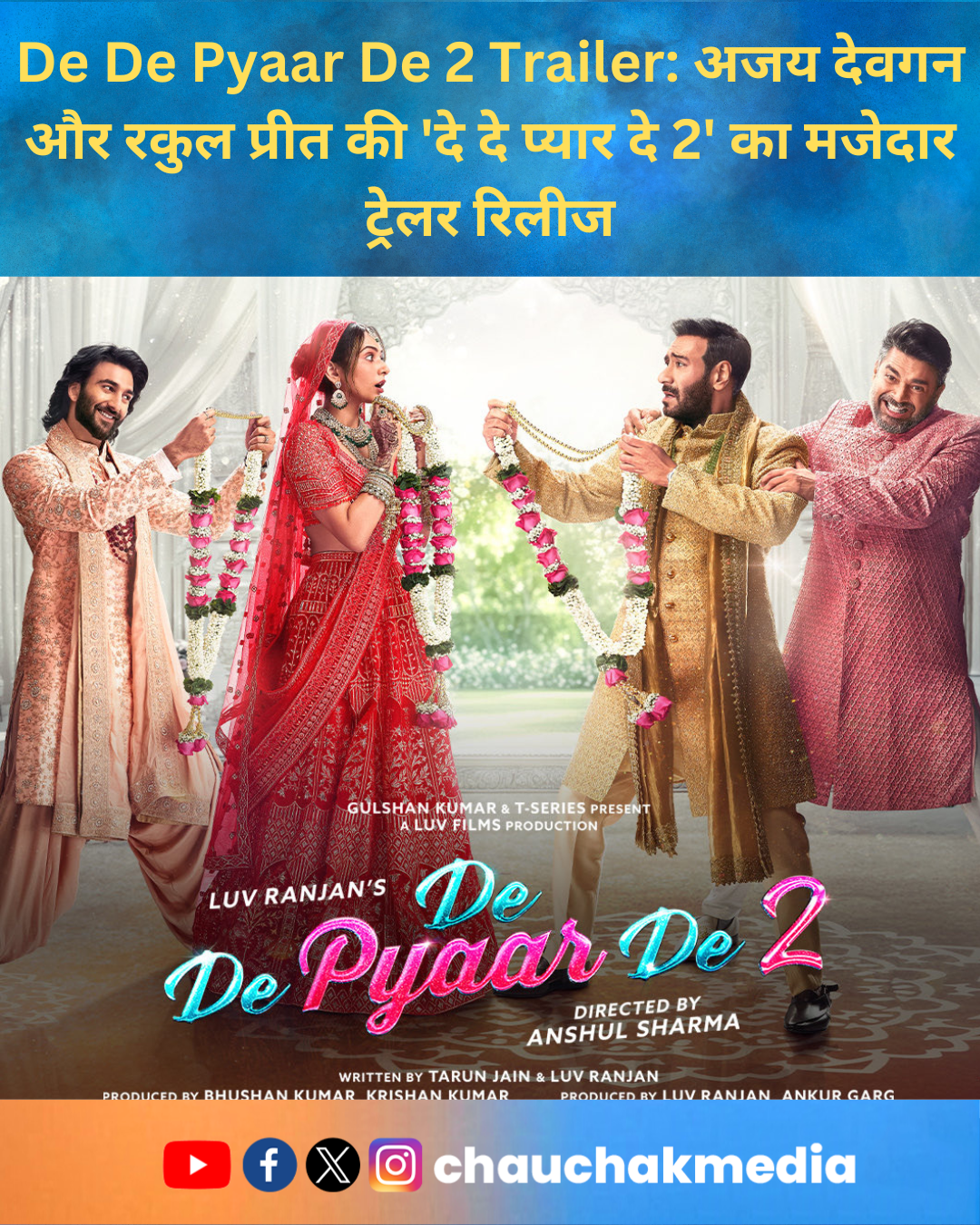 अजय देवगन और रकुल प्रीत सिंह की अपकमिंग फिल्म De De Pyaar De 2 का ट्रेलर रिलीज हो चुका है. एक बार फिर स्क्रीन पर कम उम्र की लड़की और अधेड़ उम्र के आदमी की लव स्टोरी देखने को मिलेगी. साल 2019 में आई दे दे प्यार दे के इस सीक्वल का ट्रेलर काफी मजेदार लग रहा है. अजय देवगन और रकुल प्रीत सिंह के साथ-साथ इस बार मूवी में कुछ नए किरदारों की भी एंट्री हुई है. चलिए जानते हैं फिल्म की कास्ट में इस बार कौन-कौन नजर आ रहा है और ये मूवी कब रिलीज हो रही है?