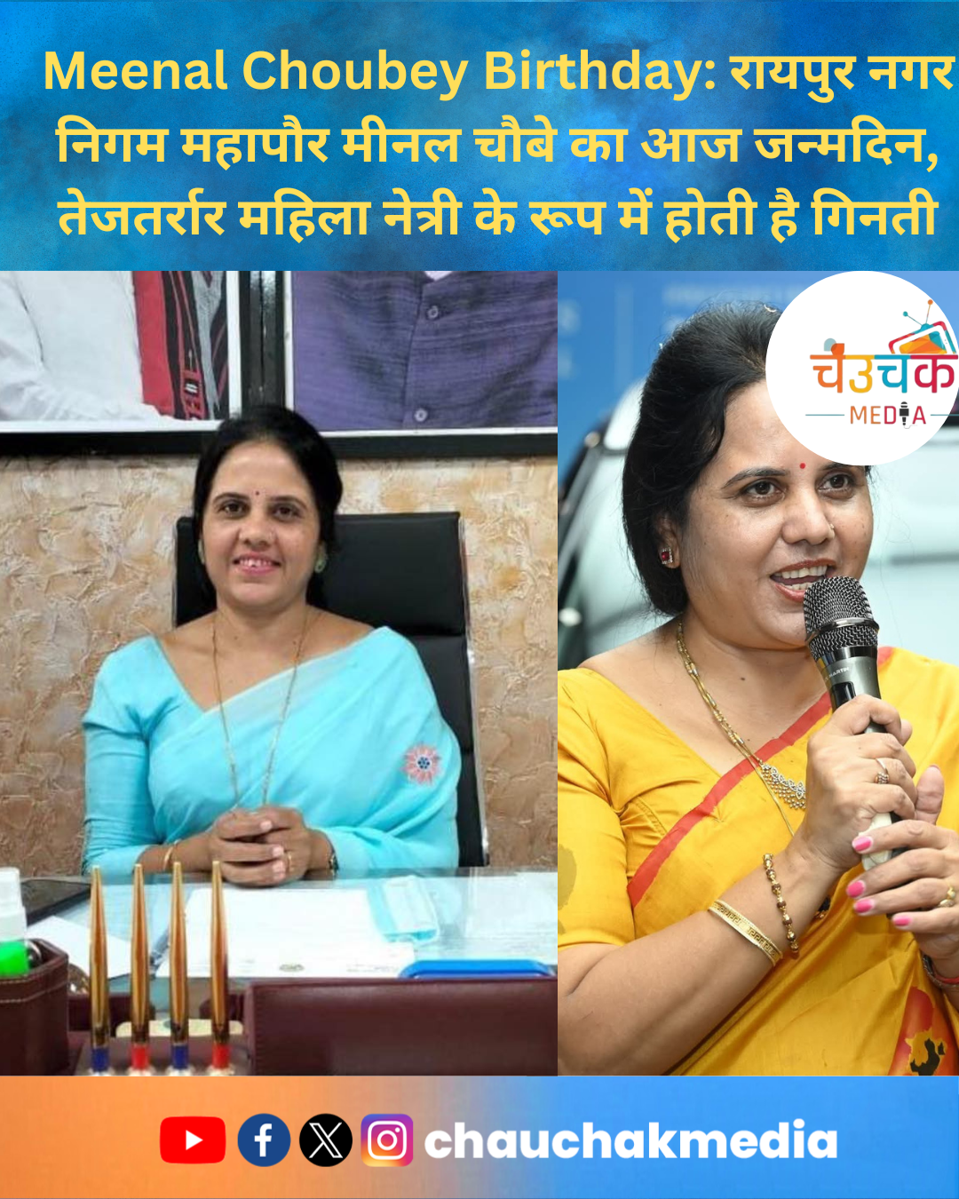 Meenal Choubey Birthday: मीनल छगन चौबे छत्तीसगढ़ की एक भारतीय राजनीतिज्ञ हैं , जो वर्तमान में 2025 से छत्तीसगढ़ की राजधानी रायपुर की मेयर के रूप में कार्यरत हैं । भारतीय जनता पार्टी से संबंधित , वह शहर की एक वरिष्ठ राजनेता हैं, जिन्होंने रायपुर नगर निगम में विपक्ष के नेता और रायपुर के खूबचंद बघेल वार्ड से लगातार तीन बार पार्षद ( पार्षद ) के रूप में कार्य किया।