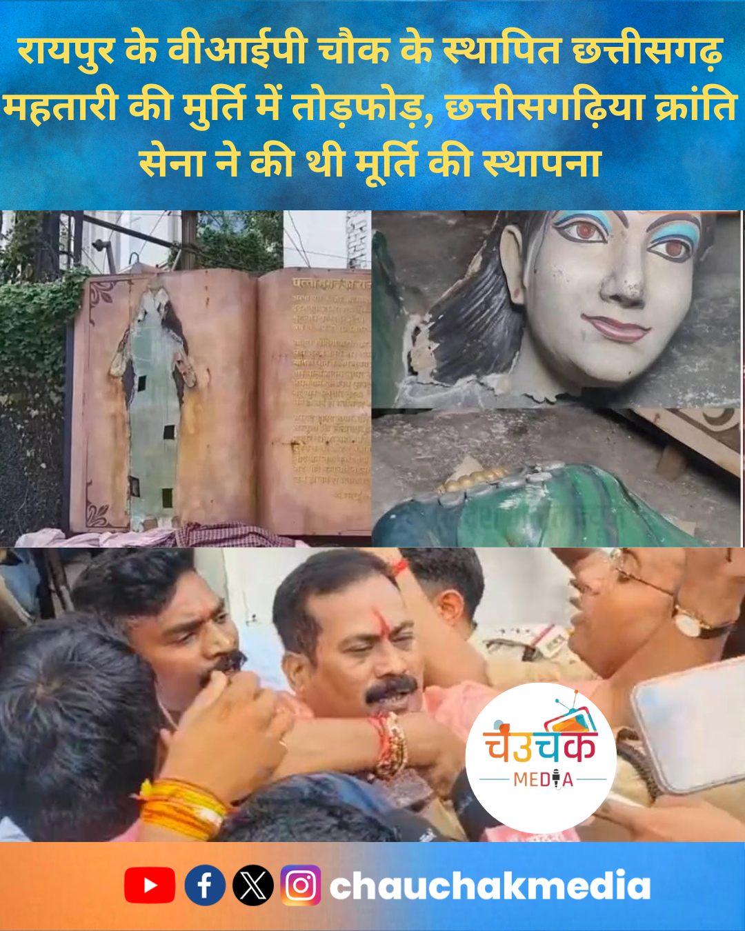 रायपुर के वीआईपी चौक के स्थापित छत्तीसगढ़ महतारी की मुर्ति में तोड़फोड़, छत्तीसगढ़िया क्रांति सेना ने की थी मूर्ति की स्थापना