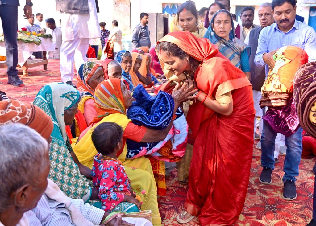 इस दौरान उन्होंने प्रदेश की माताओं, बहनों, बच्चों एवं युवाओं के उज्ज्वल और सुरक्षित भविष्य हेतु प्रार्थना की। इस अवसर पर बिलासपुर से आए युवा मोर्चा कार्यकर्ताओं ने मंत्री राजवाड़े को पुष्पगुच्छ एवं शुभकामनाएँ भेंट कर सम्मान व्यक्त किया। मंत्री ने सभी शुभेच्छुओं का आभार व्यक्त करते हुए कहा कि जनता का विश्वास और स्नेह उन्हें निरंतर जनकल्याण के कार्यों के लिए प्रेरित करता है। इसके पश्चात मंत्री राजवाड़े ग्राम खड़ौली विकासखण्ड ओड़गी स्थित आंगनबाड़ी केंद्र पहुँचीं। जहाँ उन्होंने बच्चों से स्नेहपूर्ण भेंट कर उन्हें अध्ययन सामग्री एवं उपहार प्रदान किए। तत्पश्चात वे पंडो समाज द्वारा आयोजित कार्यक्रम में शामिल हुईं और ग्रामीणजनों के साथ आत्मीय बातचीत करते हुए ठंड के मद्देनज़र गर्म कपड़ों का वितरण किया।